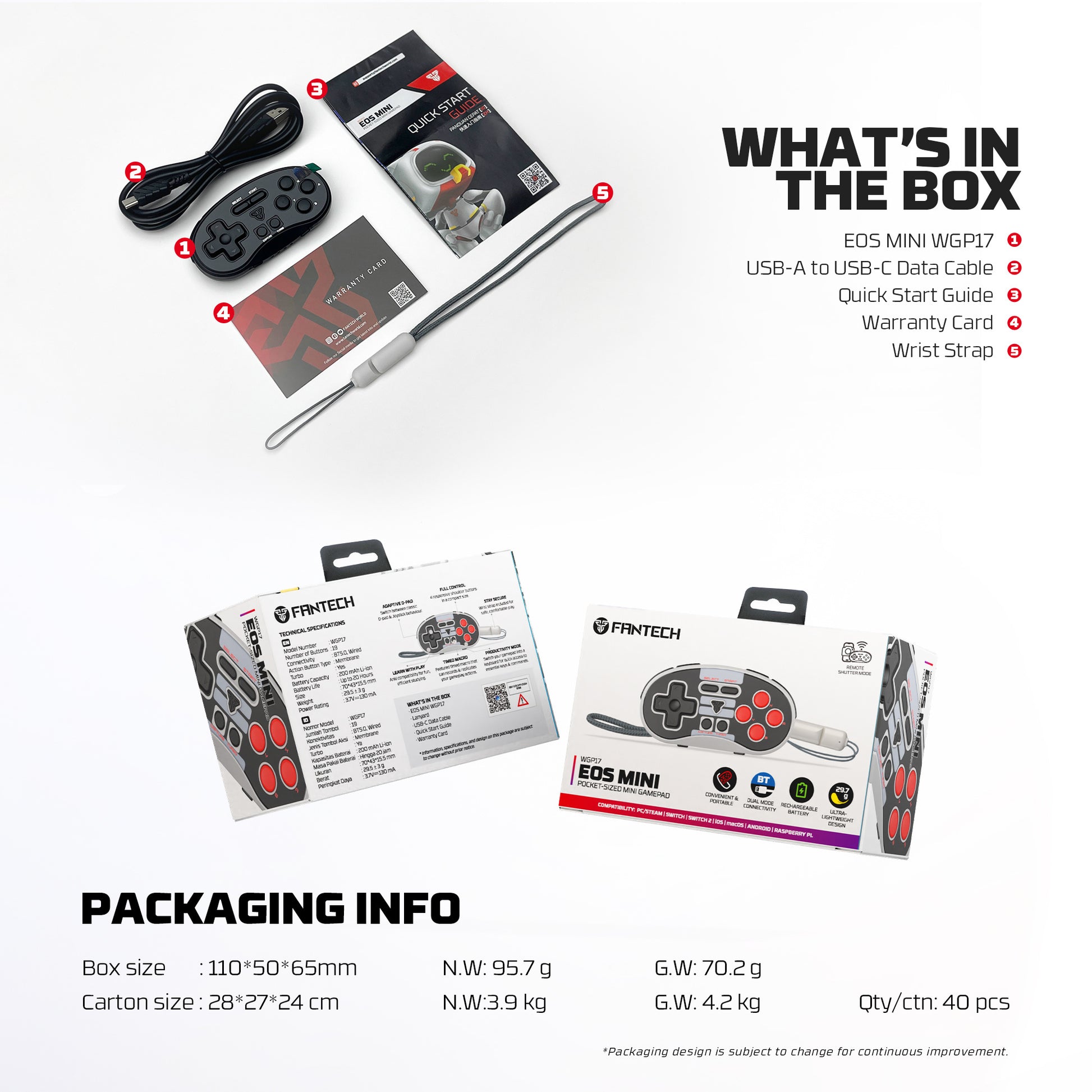 Designed with portability in mind, the EOS Mini WGP17 features a compact, lightweight build that easily fits into your pocket or bag. Whether you’re traveling, commuting, or gaming away from home, it’s easy to carry without adding bulk. This makes it the perfect companion for gamers who want reliable control and comfort wherever they play.